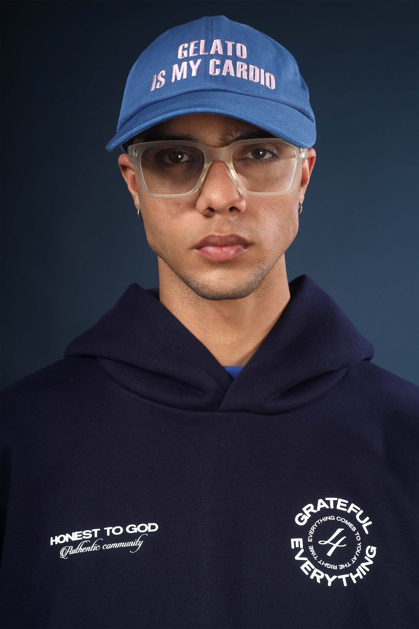 Navy Blue Grateful Box Fit Hoodie